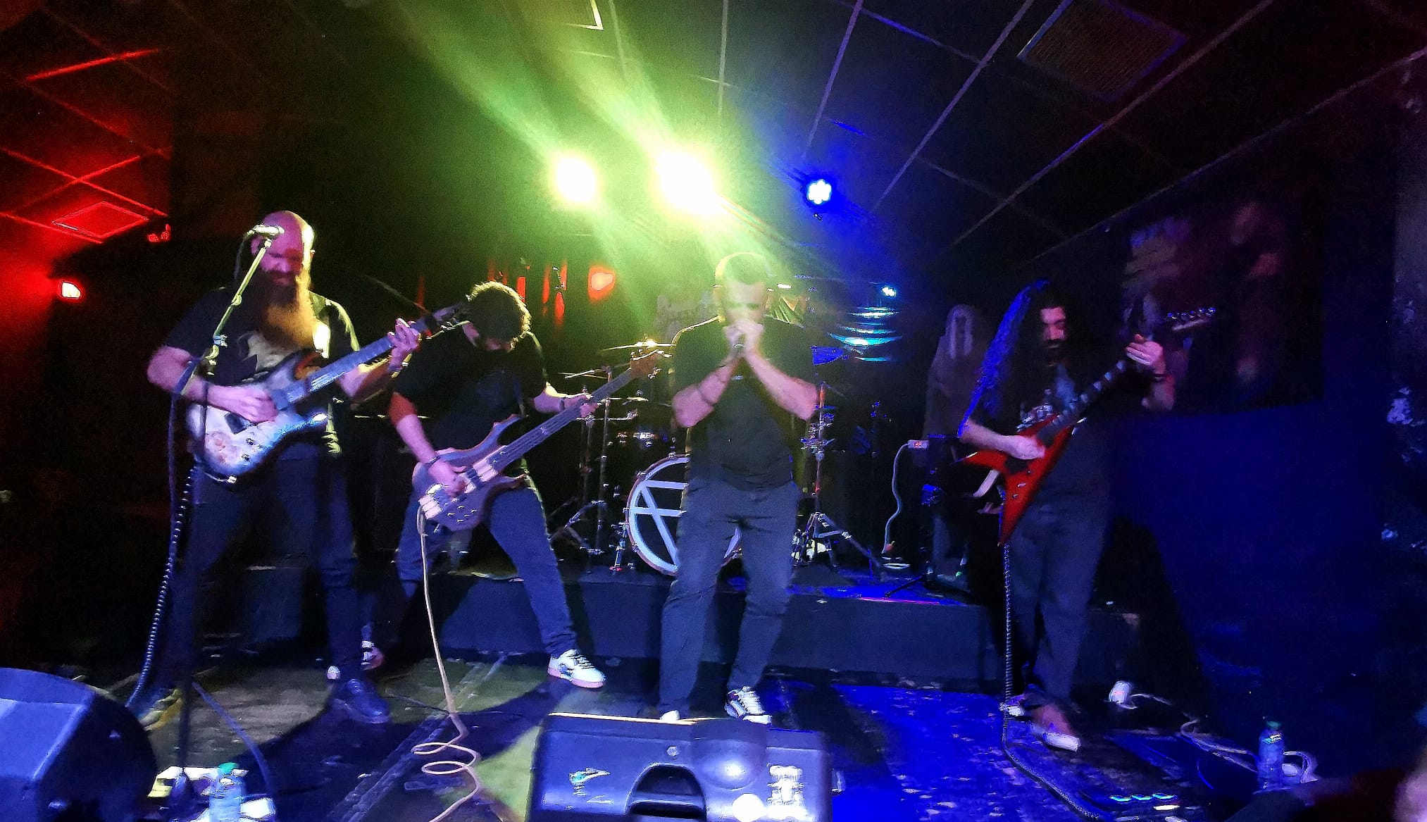 Volviendo a su repertorio no podía faltar «En Tus Manos», uno de sus temas más zapatilleros. Castañazos rítmicos, cambios de estructura y blast beats para cortocircuitarnos con unos breaks down directos a la yugular. El plato fuerte vendría con «Omega» de Lamb of God, tema con el que su frontman Ángel presume de conseguir el puesto en Congrio. No es para menos… ya que cierras los ojos y pareces escuchar a los mismísimos yanquis. Una locura como los clavan.